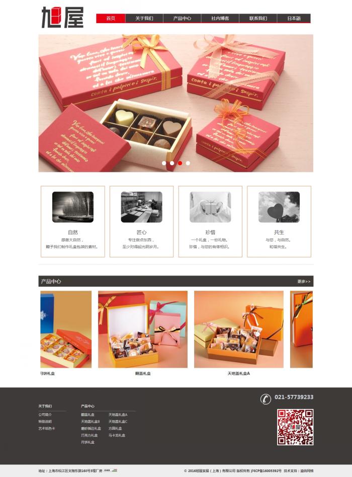 旭屋貿易(上海)有限公司是由株式會社旭屋全投資,于2012年成立在上海的一家從事禮盒包裝業務的公司。上海公司自成立以來,產品受到國內外諸多客戶的青睞。我們一方面向市場推出公司內部自創的產品,一方面接受客戶的來稿來樣定制。我們堅持品質至上,為客戶提供優良、安心的包裝;堅持與包裝業界的優秀同仁合作共贏,堅持與傳統媒體、新式媒體及其他業界的跨界合作,為創造更美好的包裝世界而貢獻自力。