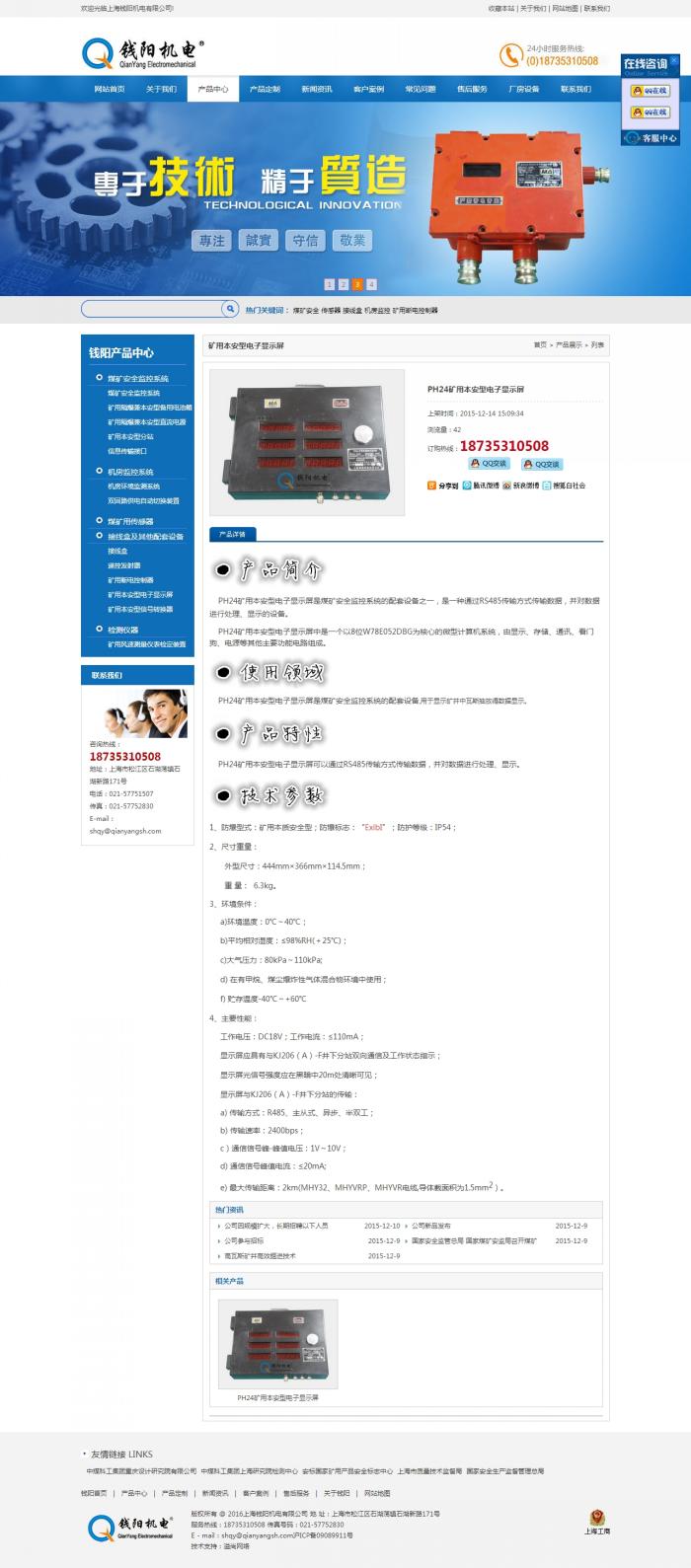 上海錢陽機電有限公司是一家以煤礦安全監控設備為主的生產企業,位于上海市松江區,現有生產基地萬余平方米,本公司的主導產品是溫度傳感器、甲烷傳感器、一氧化碳傳感器、礦用本安型分站、信息傳輸接口、礦用隔爆兼本安型直流穩壓電源、煤礦安全監控系統等煤礦安全生產設備儀器。