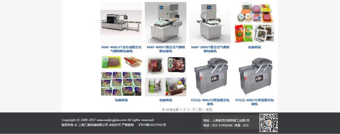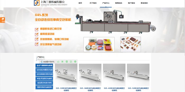 上海三景機械有限公司是一家專注于真空包裝和氣調(diào)保鮮包裝的研發(fā)、生產(chǎn)和銷售為一體的生產(chǎn)型企業(yè),產(chǎn)品應(yīng)用于食品、冷鮮肉、果蔬、海產(chǎn)品、休閑食品、醫(yī)療產(chǎn)品、電子、科研等多個領(lǐng)域.特別在食品、肉制品、醫(yī)藥、海產(chǎn)品、果蔬類的真空及氣調(diào)保鮮包裝領(lǐng)域上做出了重要貢獻.主要生產(chǎn)產(chǎn)品有:DZL系列全自動拉伸真空包裝機、MAP系列盒式氣調(diào)保鮮包裝機、DZ(Q)系列真空(充氣)包裝機。