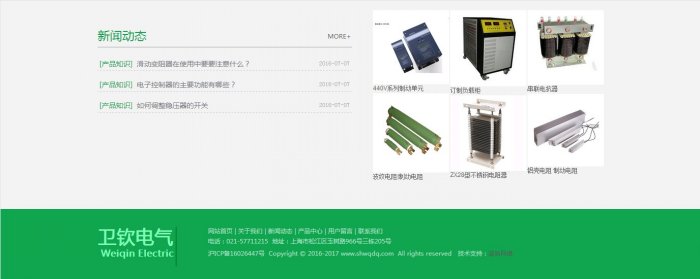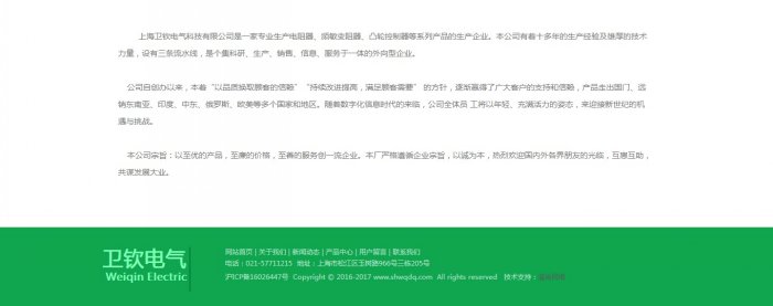 上海衛欽電氣科技有限公司是一家專業生產電阻器、頻敏變阻器、凸輪控制器等系列產品的生產企業。本公司有著十多年的生產經驗及雄厚的技術力量,設有三條流水線,是個集科研、生產、銷售、信息、服務于一體的外向型企業。公司自創辦以來,本著“以品質換取顧客的信賴”“持續改進提高,滿足顧客需要” 的方針,逐漸贏得了廣大客戶的支持和信賴,產品走出國門、遠銷東南亞、印度、中東、俄羅斯、歐美等多個國家和地區。隨著數字化信息時代的來臨,公司全體員 工將以年輕、充滿活力的姿態,來迎接新世紀的機遇與挑戰。