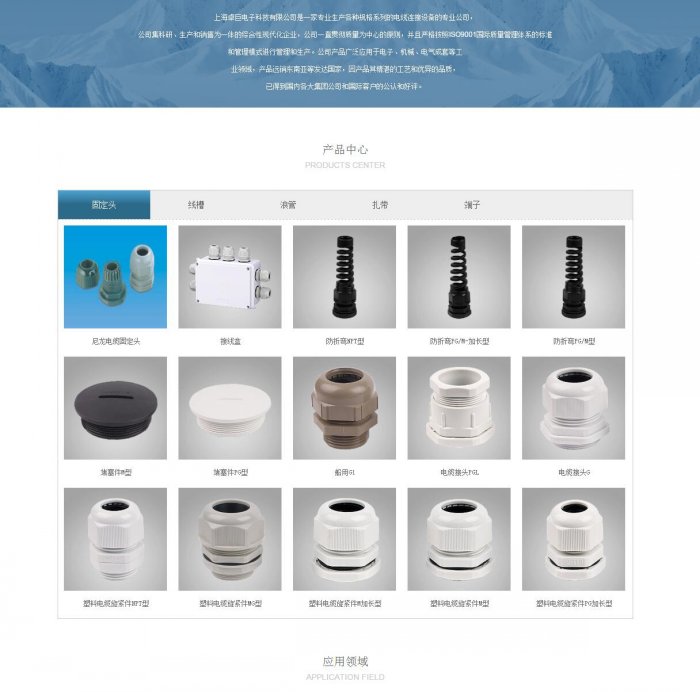 網站描述:首頁采用企業(yè)型網站排版方式,以藍色為主題色,突顯企業(yè)實力并內容豐富。首頁包含最新推薦版塊,公司簡介版塊,產品中心版塊,應用領域版塊,新聞資訊版塊。