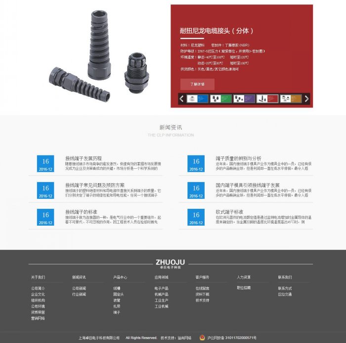 上海卓巨電子科技有限公司是一家生產各種規(guī)格系列的電線連接器(電纜接頭、線配器材)的專業(yè)公司,公司集科研、生產和銷售為一體的綜合性現(xiàn)代化企業(yè),公司一直貫徹質量為中心的原則,并且嚴格按照ISO9001國際質量管理體系的標準和管理模式進行管理和生產。公司產品廣泛應用于電子,機械,電氣成套等工業(yè)領域,產品遠銷東南亞等發(fā)達國家,因產品其精湛的工藝和優(yōu)異的品質,已得到國內各大集團公司和國際客戶的公認和好評。