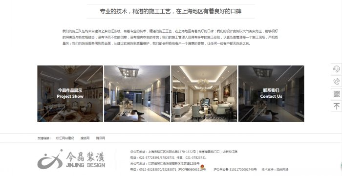 今晶裝潢設計前身為(上海鳳起裝潢設計有限公司,成立于2002年),公司本著做大做強、資源共享的商業原則,2004年加入了同濟大學下屬的連鎖體系卡弗特同濟裝飾,成了同濟裝飾連鎖體系中的一員,2006年本公司更名為卡弗特同濟連鎖今晶裝潢設計有限公司。本公司管理人員都經過同濟大學和連鎖體系總部的專業化培訓,經數年的精心打造,已錘煉成為當地實力雄厚,有著一定規模的裝飾品牌。同濟連鎖體系松江店(上海今晶裝潢設計有限公司)依托美國卡弗特公司的先進設計理念,強大的品牌資源和豐富的連鎖管理經驗,結合同濟大學的人才優勢,組成國際一流的專業化設計和工程管理團隊,為我們的客戶設計非凡空間,創造舒適生活。