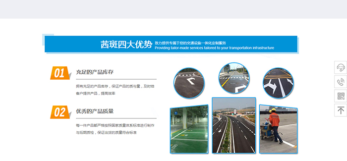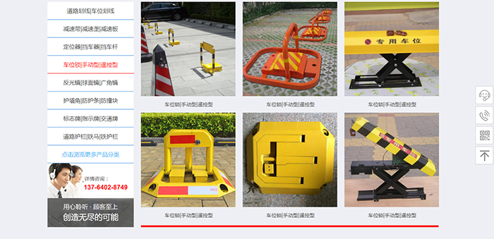 上海茜斑交通設施有限公司的是專業生產和銷售各類交通設施的綜合性專業化交通設施廠家,通過本交通設施網面向全國銷售各類交通安全設施,同時公司還承接停車場設施工程和交通設施工程。生產經營的停車場交通設施產品有各種誘導標、輪廓標、反光道釘、反光路錐、廣角鏡、(反光鏡、轉角鏡、反射鏡、彎道鏡、凸面鏡、球面鏡、半球鏡、后視鏡、 魚眼睛)、停車牌、安全閃燈、三角警告牌、車輪鎖、車位鎖、車輪定位器(車輪止退器、擋車座、擋車器)、減速路拱(減速坡、減速帶)、塑料水馬、反光墻角墻面保護器(護角、護角膠)、護欄及護欄帶、反光標志牌、停車場及停車位標線施劃、伸縮帶隔離柱(隔離帶、隔離柱、欄桿座、圍欄)、道口柱(分道標)、停車牌、彈力柱、柔性柱、橡膠路錐、路標、告示牌、發光材料、反光膜、反光標線帶、路障、護欄帶、等交通安全設施制品。