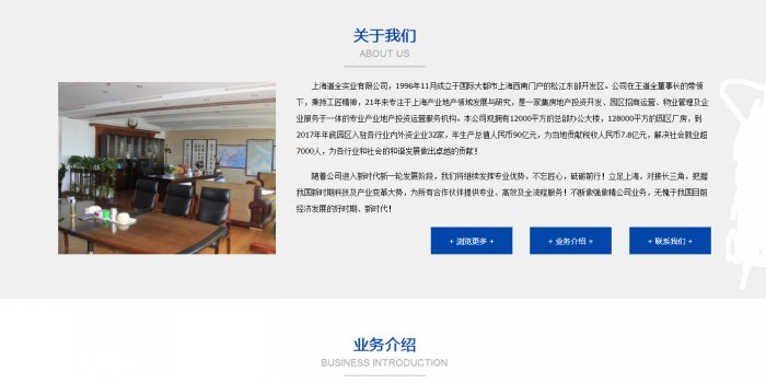 上海道全實業有限公司,1996年11月成立于國際大都市上海西南門戶的松江東部開發區。公司在王道全董事長的帶領下,秉持工匠精神,21年來專注于上海產業地產領域發展與研究,是一家集房地產投資開發、園區招商運營、物業管理及企業服務于一體的專業產業地產投資運營服務機構。本公司現擁有12000平方的總部辦公大樓,128000平方的園區廠房,到2017年年底園區入駐各行業內外資企業32家,年生產總值人民幣90億元,為當地貢獻稅收人民幣7.8億元,解決社會就業超7000人,為各行業和社會的和諧發展做出卓越的貢獻!