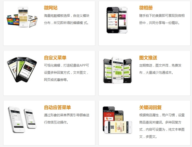 市場上智能手機比比皆是,針對手機微信的廣泛應用,公司新開發了微網站手機網站,可以鏈接微信服務號和微信訂閱號,適合多種行業,新穎微網站樣式達到了120多款,預覽或試用請查看http://wap.www.fuchengren.cn