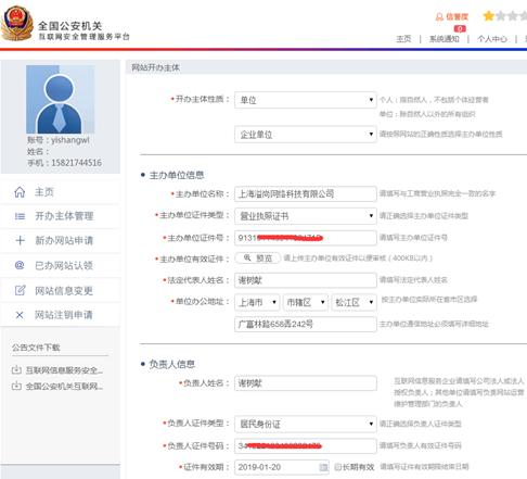 都填好后提交,等待審核就好了,審核通過后有一個網安備案號碼。