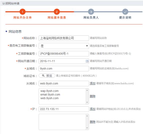 ②網站開通日期就填寫備案上面顯示的日期就好了